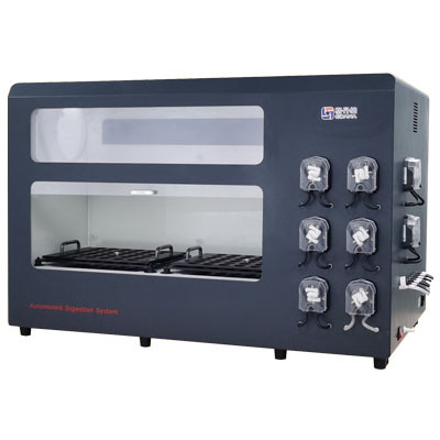 自动马达升降系统:消解过程中添加酸时,系统会举起需要添加酸的消解管,快速冷却样品,安全添加试剂,防止样液过热时添加酸引起爆沸;消解完成后系统自动关闭加热,同时样品自动被举起进行快速冷却,方便定容和取走样品;